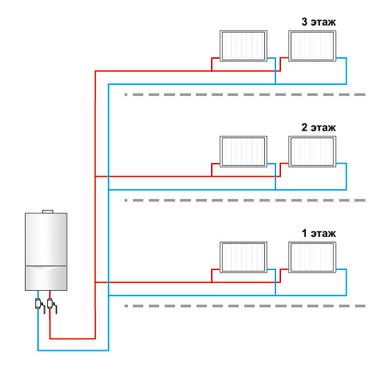 Типовые схемы применения МКС 70 / МКС 100 с настенным котлом в помещение площадью 80 - 110 кв.м.