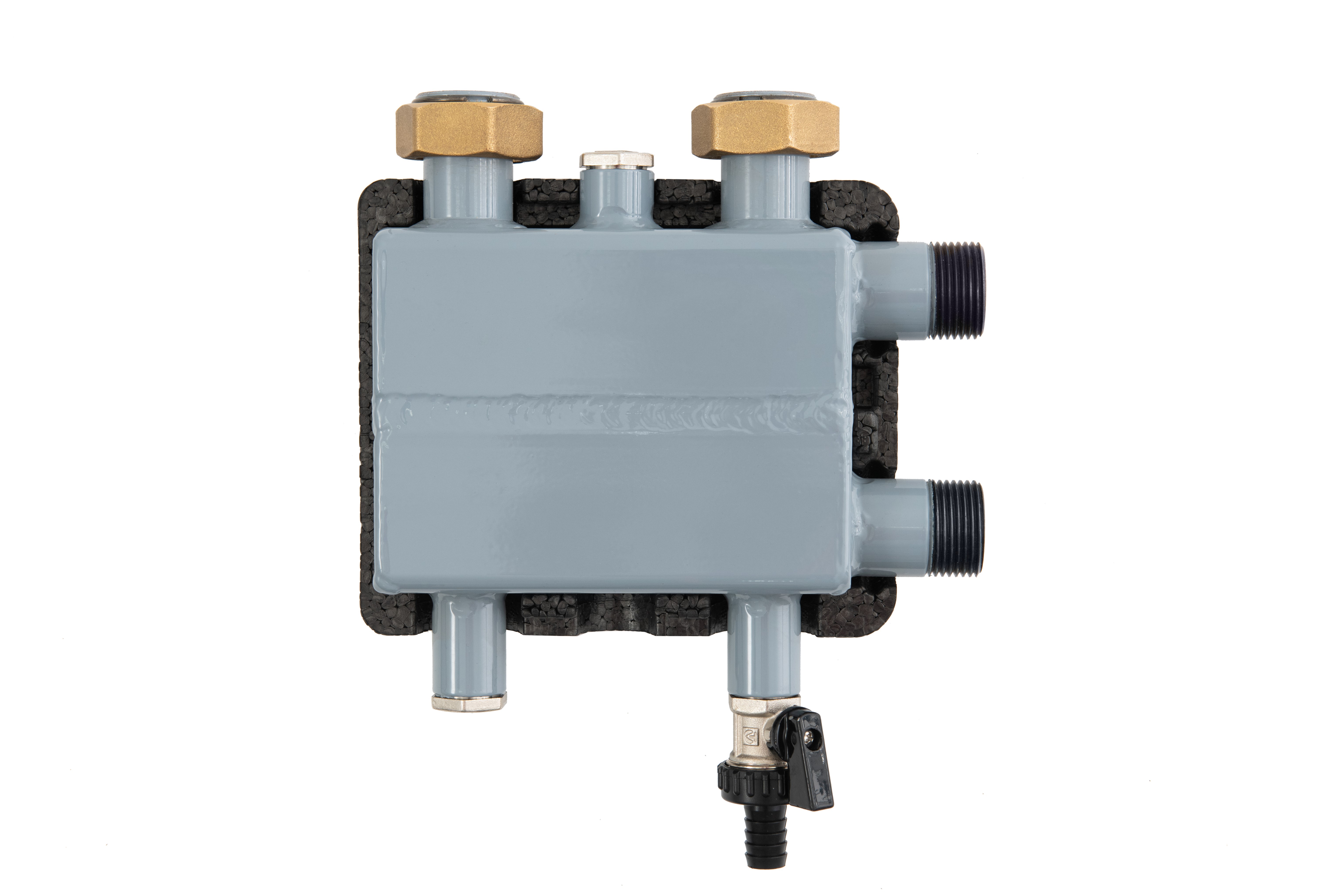 Гидравлический разделитель предназначен для разделения первичного (котлового) и вторичного (отопительного) контуров. В комплект входит: накидные гайки (2 шт), пробка 1/2'' (2 шт), кран дренажный, прокладки EPDM (2 шт).