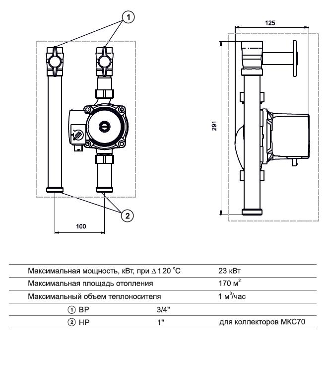 Модуль D20 прямой с насосом 15/5 МКС 70