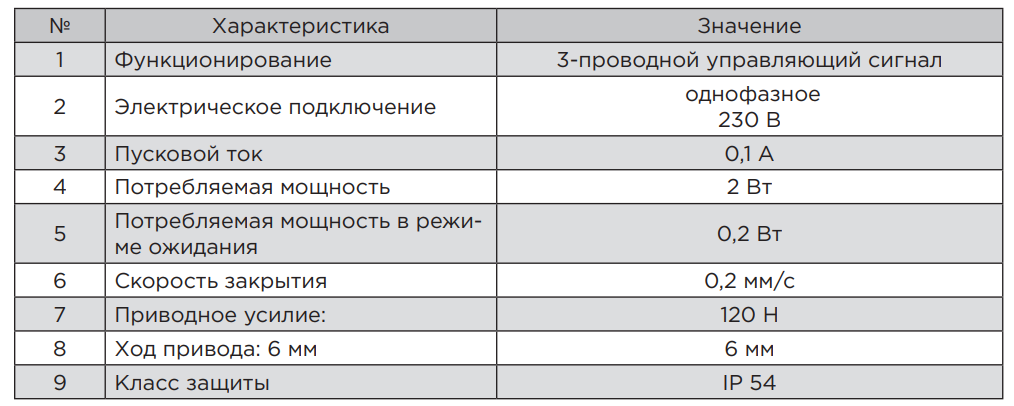Привод оснащен смонтированным (входит в комплект поставки) кабелем 3х0,5 мм длиной 0,55 м с покрытием из ПВХ.
