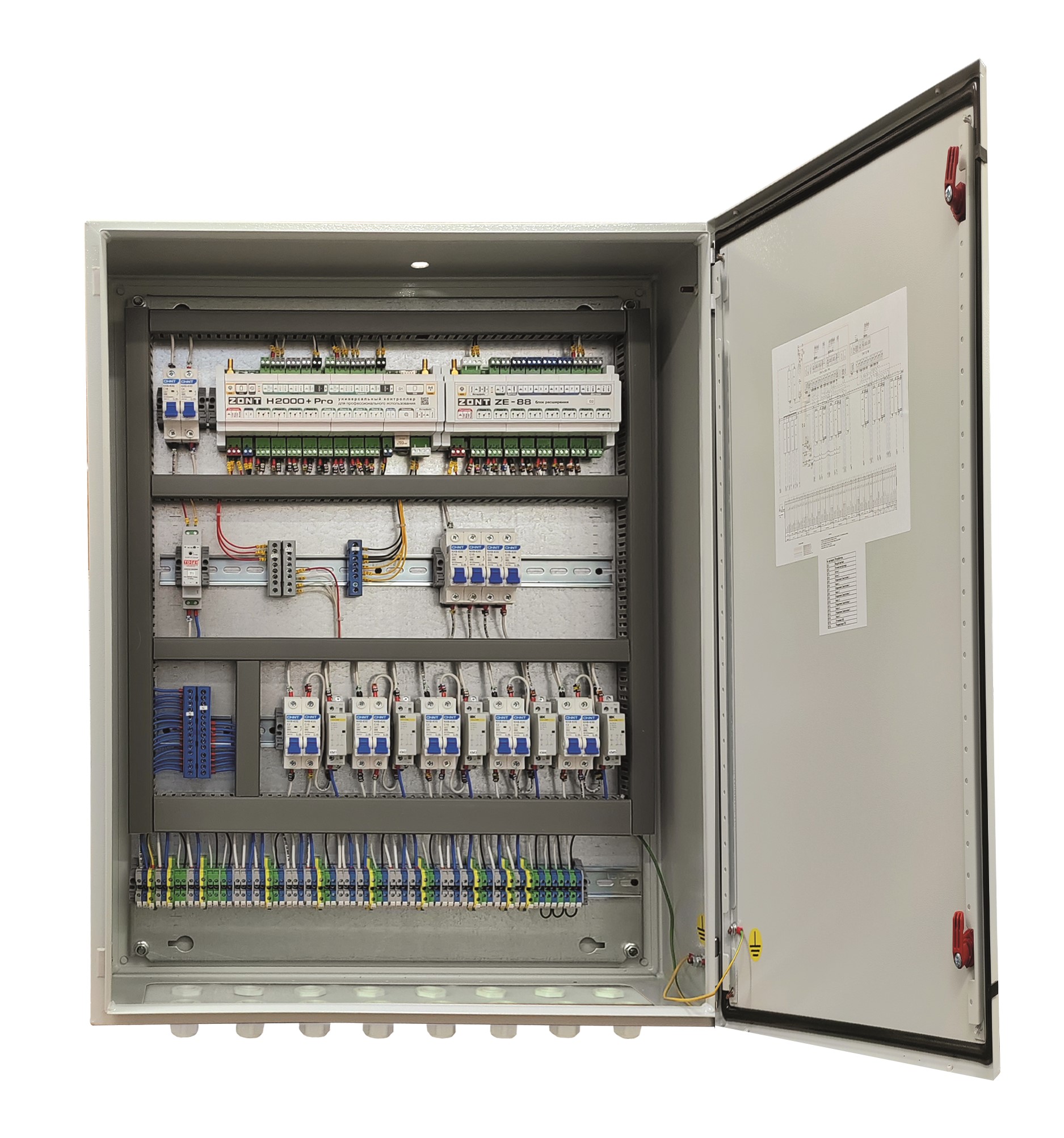 Полный комплект автоматизации и электропитания для теплогенераторной для 7-ми котлов MB 4.1 с 3-мя смесительными / прямыми контурами предназначен для подключения и управления теплогенераторной: